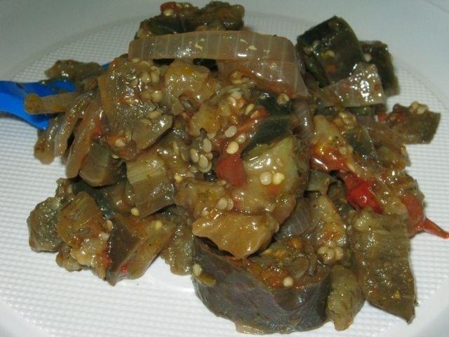баклажаны, томаты, лук репчатый, масло подсолнечное