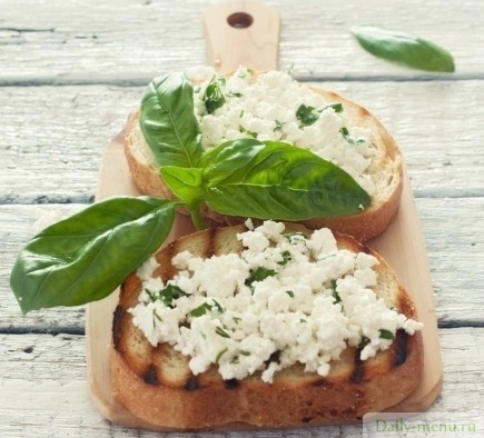 хлеб зерновой, творог зерненый сыр домашний, укроп и другие пряные травы