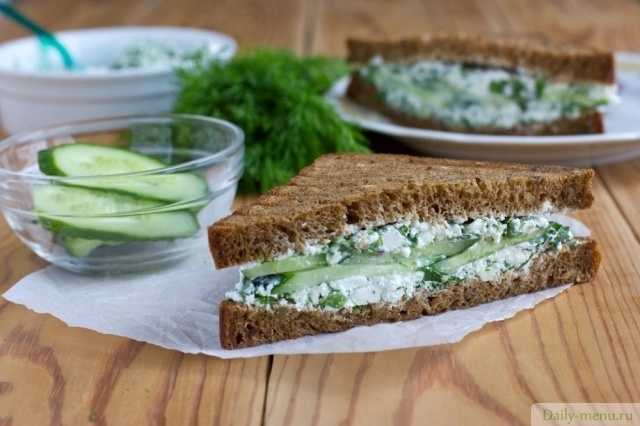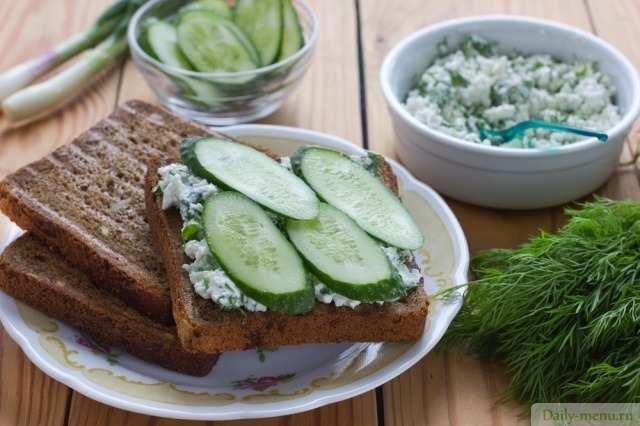 хлеб бородинский, творог, 0 % , огурец грунтовый, укроп и другие пряные травы, сметана 10,0% жирности, лук зеленый, соль поваренная пищевая