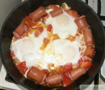 яйцо куриное сырое, сосиски молочные "фамильные", масло подсолнечное, соль поваренная пищевая