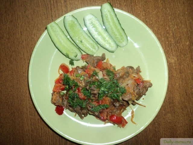 Поджарка из говяжьей печени с овощами