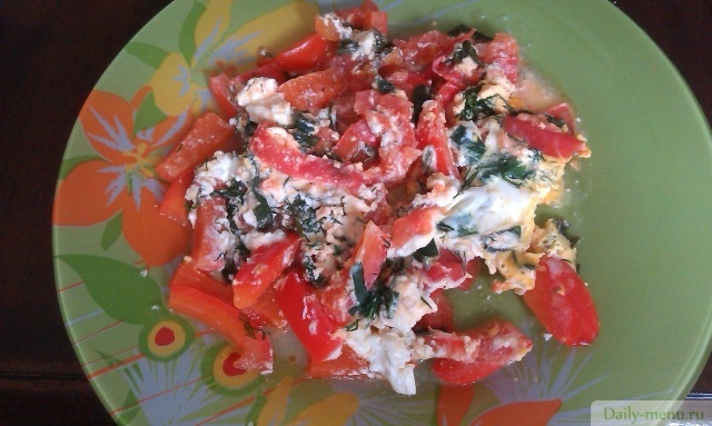 помидоры, перец красный сладкий, яйцо куриное, сыр фета, масло подсолнечное