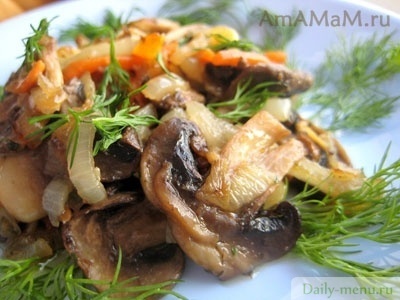 шампиньоны, морковь, лук репчатый, масло подсолнечное