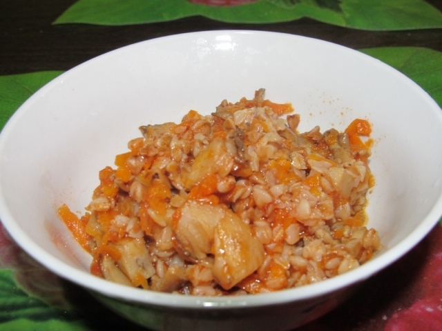 вешенки свежие, морковь, гречневая крупа ядрица, томатная паста, вода, масло подсолнечное