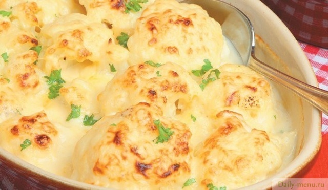 капуста цветная, сыр мягкий (моцарелла), сметана 10,0% жирности, сухари панировочные, укроп и другие пряные травы, чеснок, соль поваренная пищевая, перец черный молотый