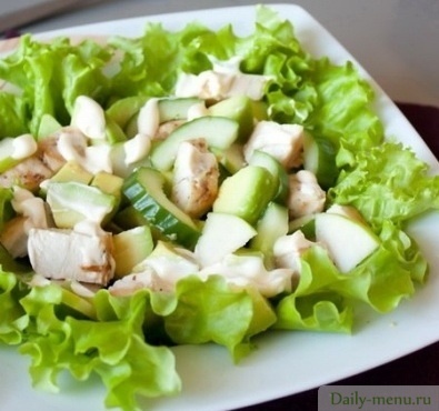 куриная грудка, без кожи, авокадо, яблоки, огурец грунтовый, йогурт 1,5% , салат, сок лимонный, масло подсолнечное, соль поваренная пищевая, перец черный молотый