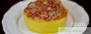 кабачок, фарш из говядины, рис отварной, вода, морковь, лук репчатый, томатная паста, сметана 15,0% жирности, масло подсолнечное
