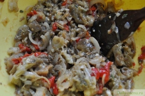баклажаны, мука пшеничная , перец красный сладкий, масло сливочное 72%, яйцо куриное, лук репчатый, сок лимонный, масло оливковое, розмарин, чеснок, соль поваренная пищевая, перец черный молотый