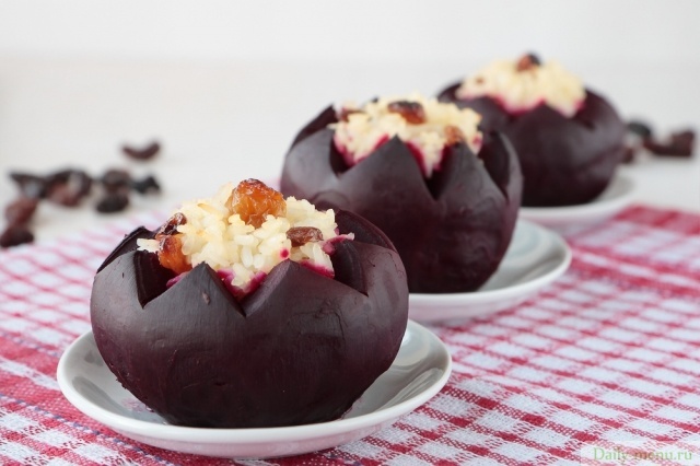 Молодая свекла, фаршированная рисом, изюмом и орехами