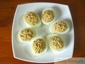яйцо куриное, шампиньоны, лук репчатый, сметана 15,0% жирности