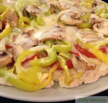 куриное филе (сырое), помидоры, перец красный сладкий, сыр ольтермани 9%, шампиньоны, яйцо куриное, отруби овсяные мои