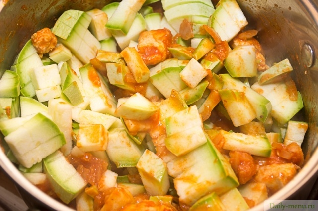 кабачок, курица филе, без кожи, вода, лук репчатый, укроп и другие пряные травы, томатная паста, масло оливковое