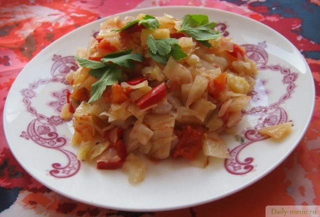 репа, капуста белокочанная, перец сладкий, помидоры, укроп и другие пряные травы, масло оливковое, соль поваренная пищевая, перец черный молотый, перец красный молотый
