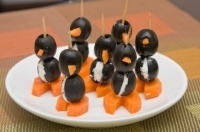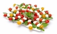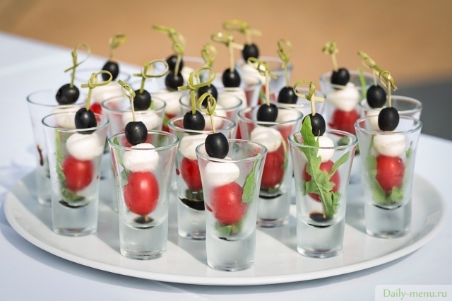 Закуска из авокадо, сельди с помидорами черри на шпажках