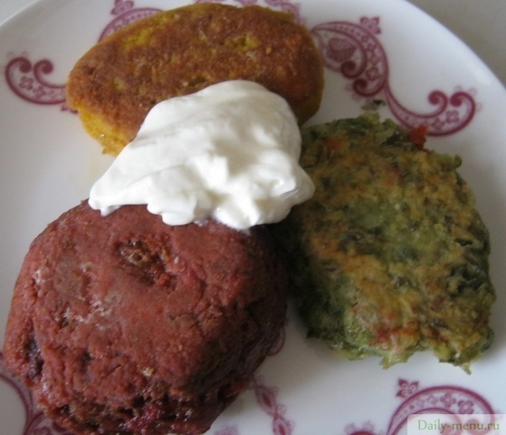морковь, свекла, кабачок, мука цельнозерновая, яйцо куриное, лук зеленый, масло подсолнечное, соль поваренная пищевая, имбирь порошок, перец черный молотый