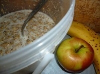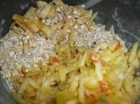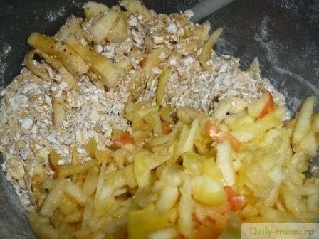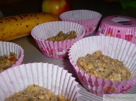 овсяные хлопья геркулес, яблоки, банан, яйцо куриное, молоко 3,2% , сахар-песок, масло подсолнечное, мак-семя, разрыхлитель теста, ванилин, корица