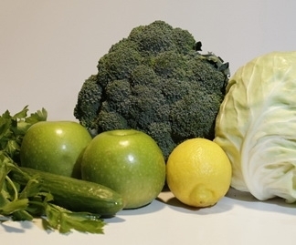яблоки, капуста белокочанная, брокколи, сельдерей черешковый, огурец грунтовый, лимон