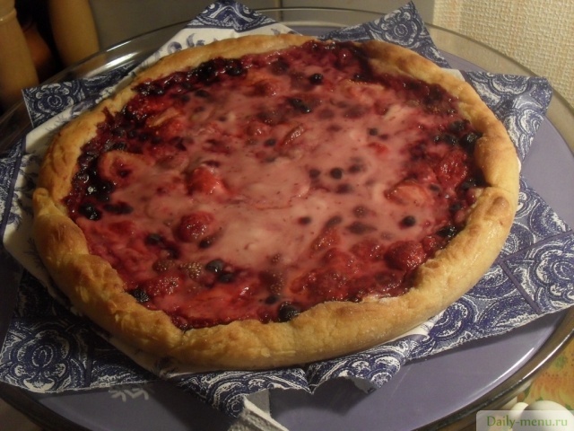 мука пшеничная , сахар-песок, сметана 18% жирности, масло сливочное 72%, яйцо куриное, черника, малина, ванильный сахар, пищевая сода, соль поваренная пищевая