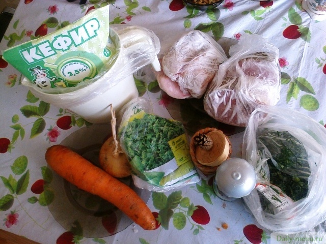 судак, кефир 2,5% жирности, шпинат, морковь, лук репчатый, укроп и другие пряные травы, масло подсолнечное