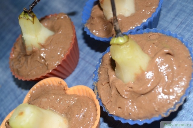 груша, мука пшеничная , масло сливочное 72%, яйцо куриное, горький шоколад, масло подсолнечное, сахар-песок, корица, разрыхлитель теста