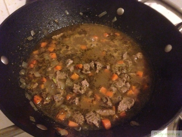 говядина лопаточная часть, лук репчатый, морковь, масло подсолнечное, чеснок, укроп и другие пряные травы, соль поваренная пищевая, перец черный молотый