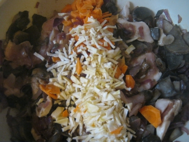 Куриное филе с грибами и кореньями