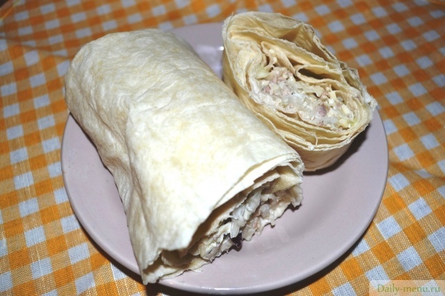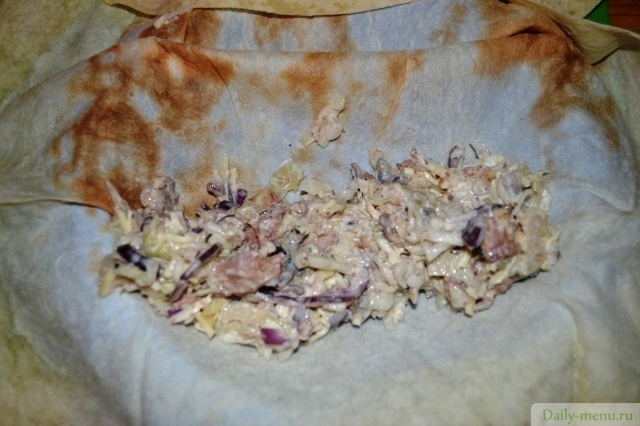 Шаурма с сайрой и белокочанной капустой