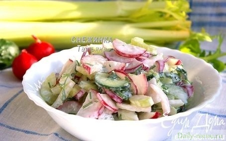 сельдерей, сметана 20,0% жирности, редис, соль поваренная пищевая, лук зеленый, укроп обыкновенный
