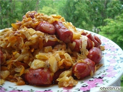 картофель, сосиски молочные, капуста белокочанная, квашеная, вода, масло подсолнечное, соль поваренная пищевая, перец черный молотый