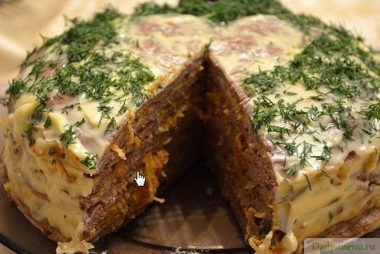 молоко 2,5% , печень телячья, яйцо куриное, мука пшеничная , лук репчатый, морковь, масло подсолнечное, соль поваренная пищевая, укроп и другие пряные травы