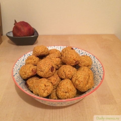 морковь, мука пшеничная , сахар тростниковый, овсяные хлопья геркулес, масло оливковое, изюм, имбирь порошок, корица, орех мускатный, соль поваренная пищевая