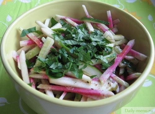 редька зеленая, сельдерей, редис, укроп обыкновенный, лук зеленый, соль поваренная пищевая