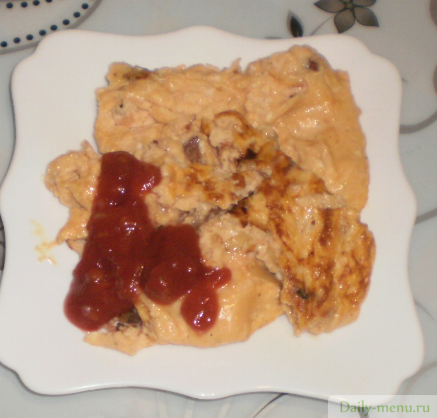 яйцо куриное, лук репчатый, сметана 20,0% жирности, томатная паста, бекон, чеснок