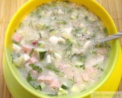 айран кисломолочный, вода, колбаса докторская прайм, яйцо куриное крутое, картофель, огурец грунтовый, редис, лук зеленый