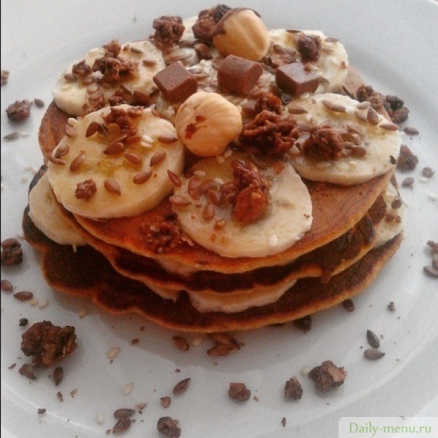 банан, яйцо куриное, мука цельнозерновая, молоко 0.5%, крупа овсяная, изюм