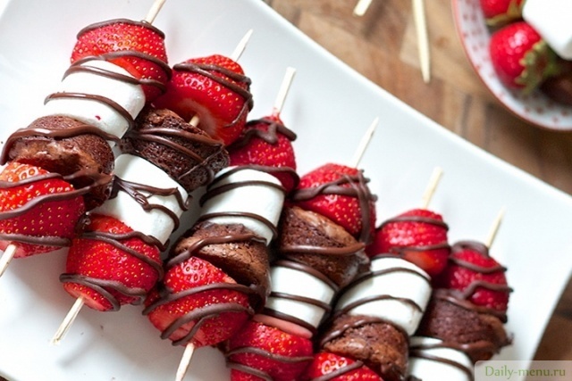 земляника, клубника, бисквит шоколадный, маршмеллоу, горький шоколад
