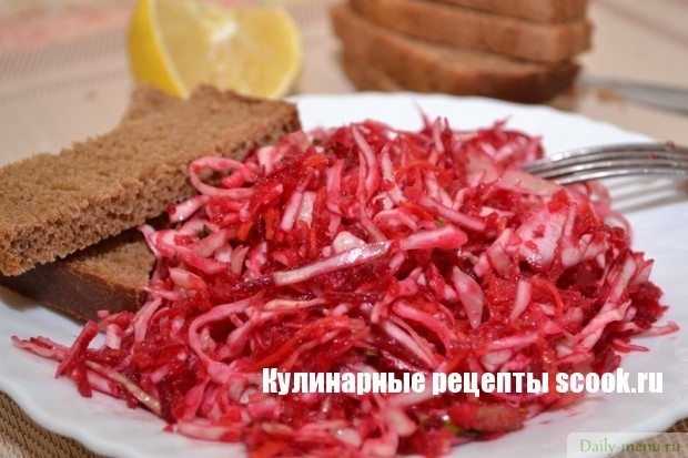 капуста белокочанная, яблоки, морковь, свекла, сок лимонный, масло подсолнечное, чеснок, петрушка