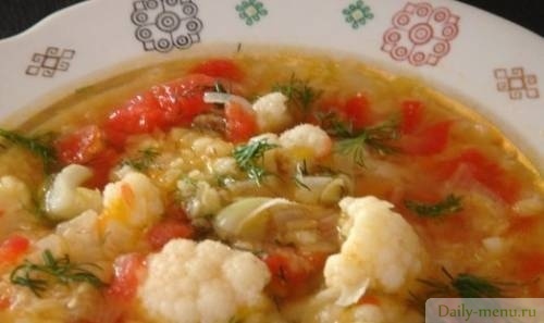 вода, капуста цветная, чечевица зерно, помидоры, перец сладкий, морковь, петрушка, масло оливковое, соль поваренная пищевая, имбирь корень, морская капуста сушеная