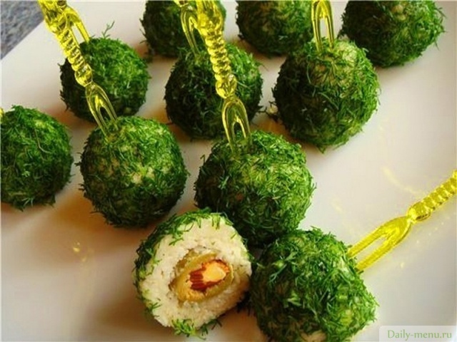 сыр гауда, оливки, миндаль, укроп и другие пряные травы, майонез , чеснок