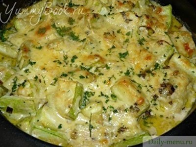 кабачок, кефир 2,5% жирности, яйцо куриное, сыр российский, укроп и другие пряные травы, чеснок, соль поваренная пищевая, перец черный молотый