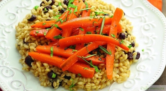 вода, морковь, крупа перловая, лук репчатый, изюм, масло оливковое, мед натуральный (мёд), масло сливочное 72%, чеснок, розмарин, петрушка