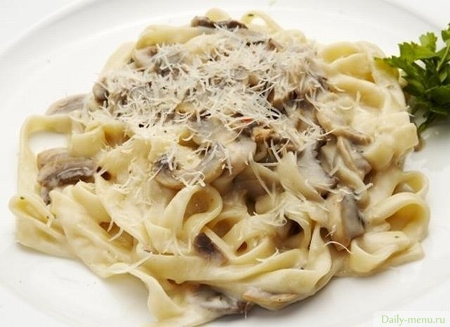 вода, ветчина особая, паста (спагетти), сливки, 10,0% жирности, шампиньоны, яичный желток куриный, сыр пармезан, масло оливковое, чеснок, соль поваренная пищевая