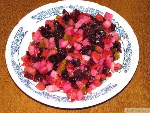 капуста белокочанная, картофель, горошек зеленый. консервы, свекла, огурец маринованный, морковь, лук репчатый, масло оливковое