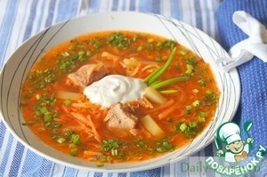 вода, капуста белокочанная, картофель, морковь, лук репчатый, томатная паста, сельдерей, корень, пшено, соль поваренная пищевая, чеснок, сахар-песок, укроп и другие пряные травы, лимонная кислота