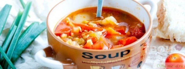 вода, перец сладкий, сок томатный, помидоры, масло оливковое, кукуруза консервы, морковь, лук репчатый, масло сливочное 82%, соль поваренная пищевая, имбирь корень, перец черный горошек