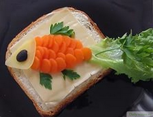 морковь, хлеб пшеничный, сыр костромской, масло сливочное 72%, салат, маслины средние и мелкие, петрушка