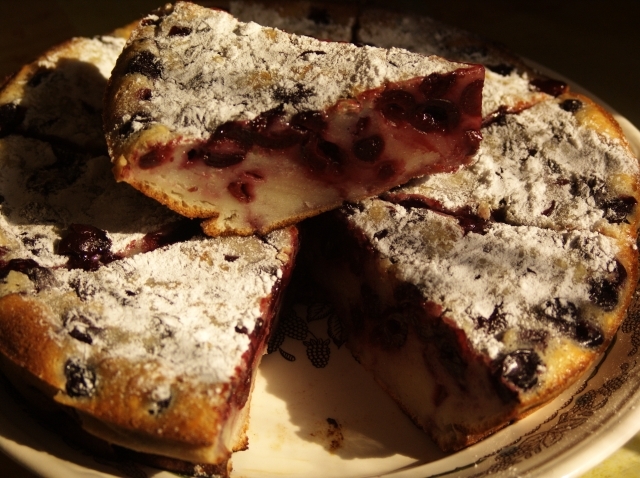 вишня, яйцо куриное, молоко 2,5% , мука пшеничная , сахар-песок, масло сливочное 72%, сахарная пудра