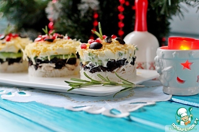 Салат с рисом, курицей и черносливом