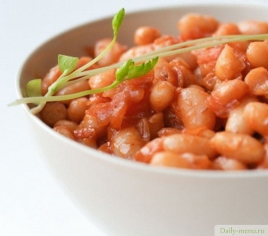 фасоль отварная, вода, лук репчатый, томатная паста, масло подсолнечное, сахар-песок