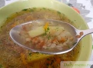 куриный бульон, картофель, лук репчатый, гречневая крупа продел